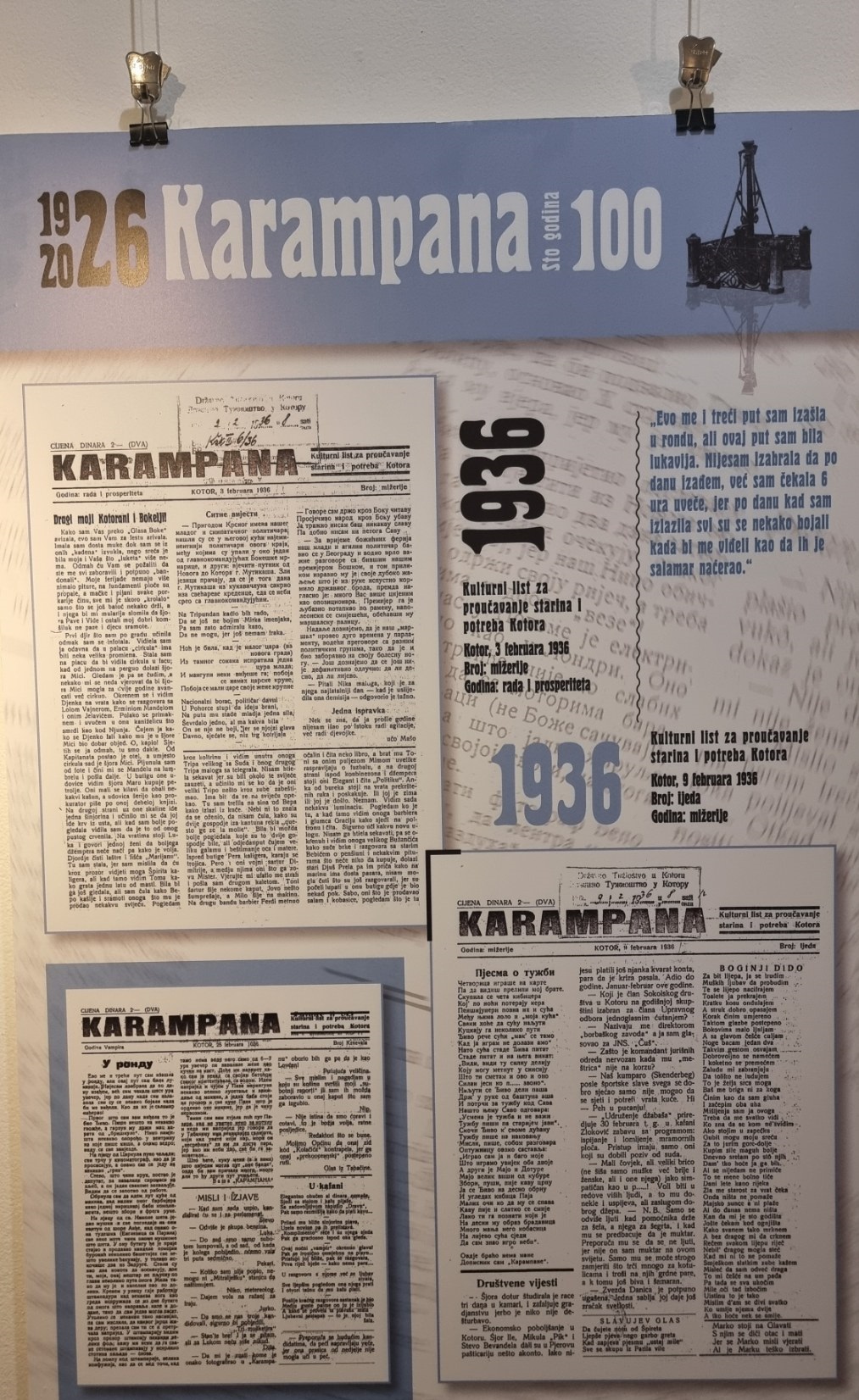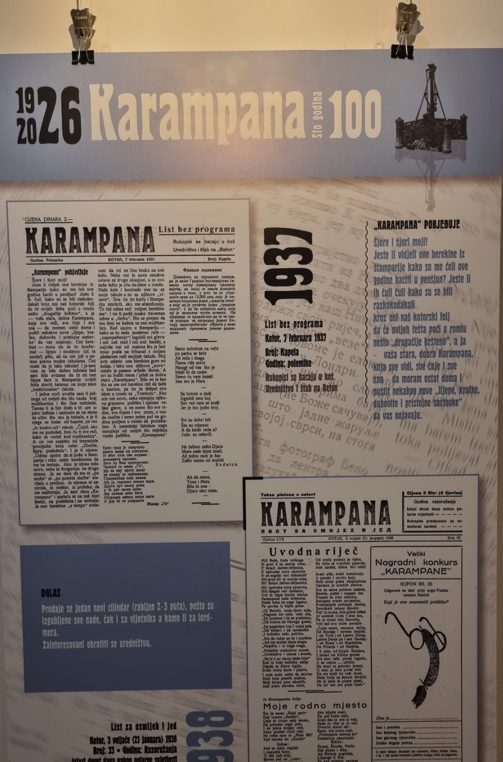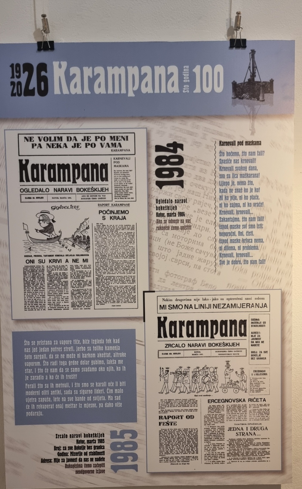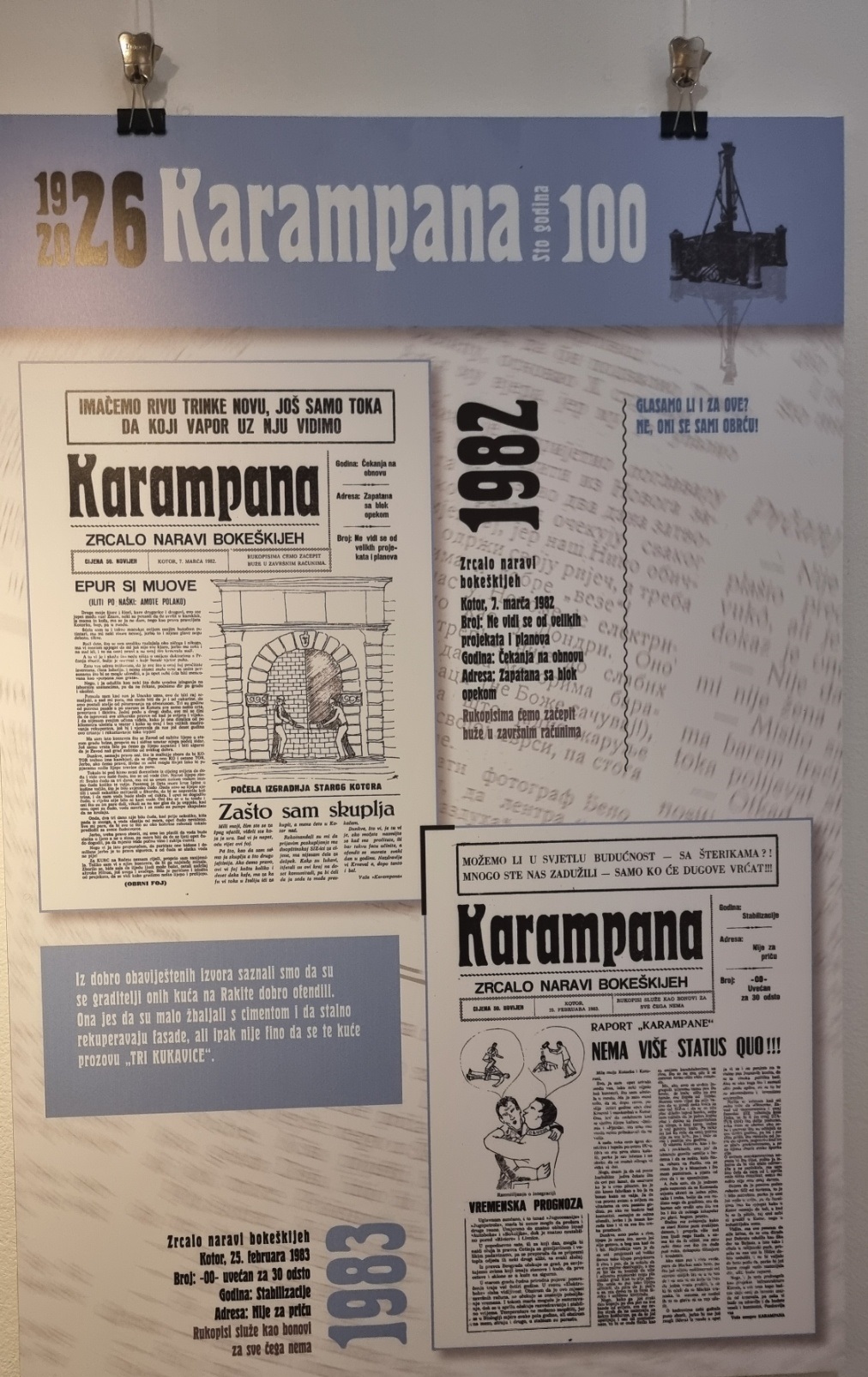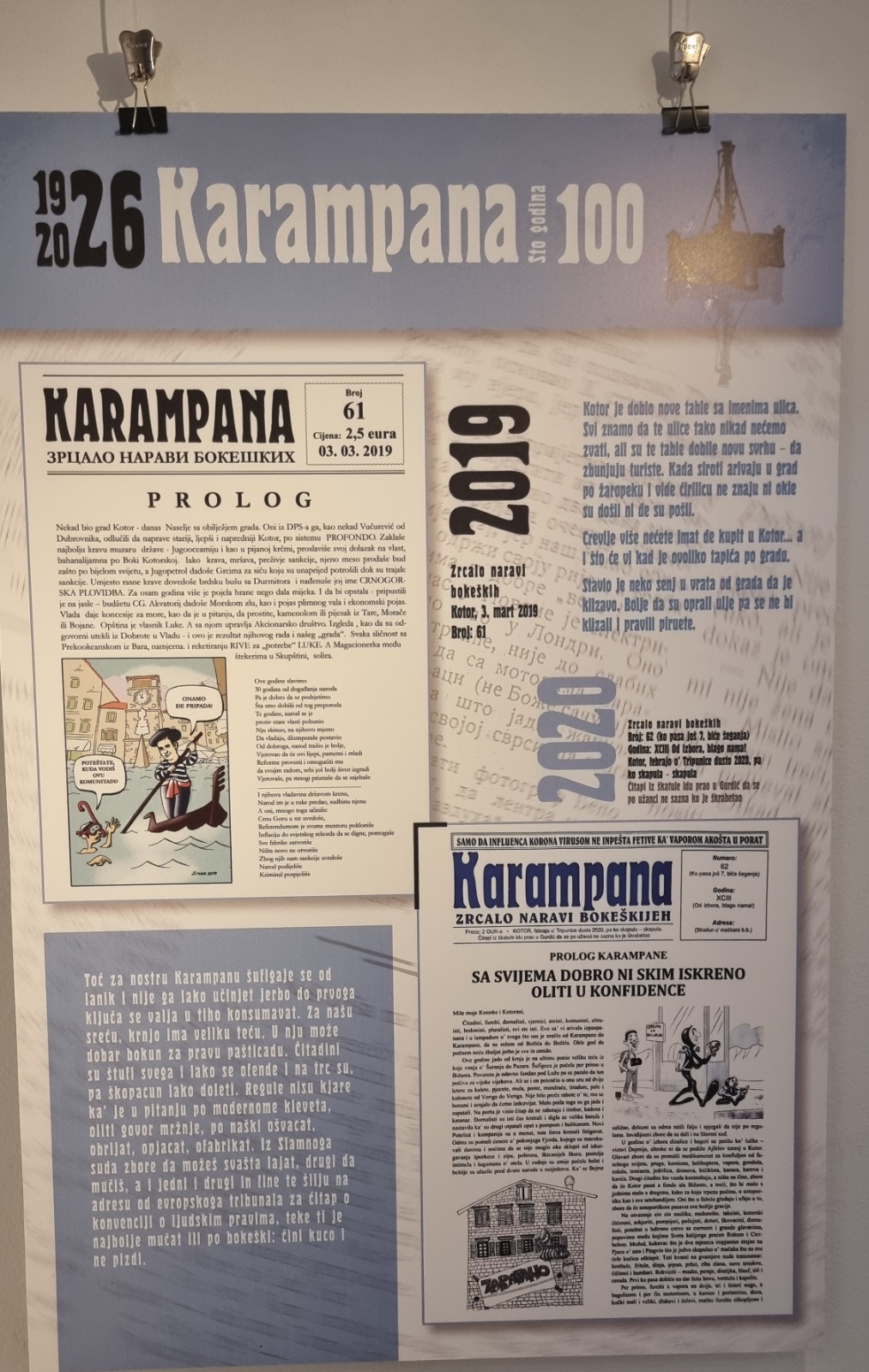 Inače, nakon multimedijalne večeri u Kinu “Boka” i pomenuta izložba postavljena je povodom 100 godina lista „Karampana“.
