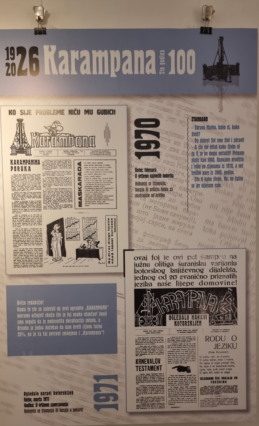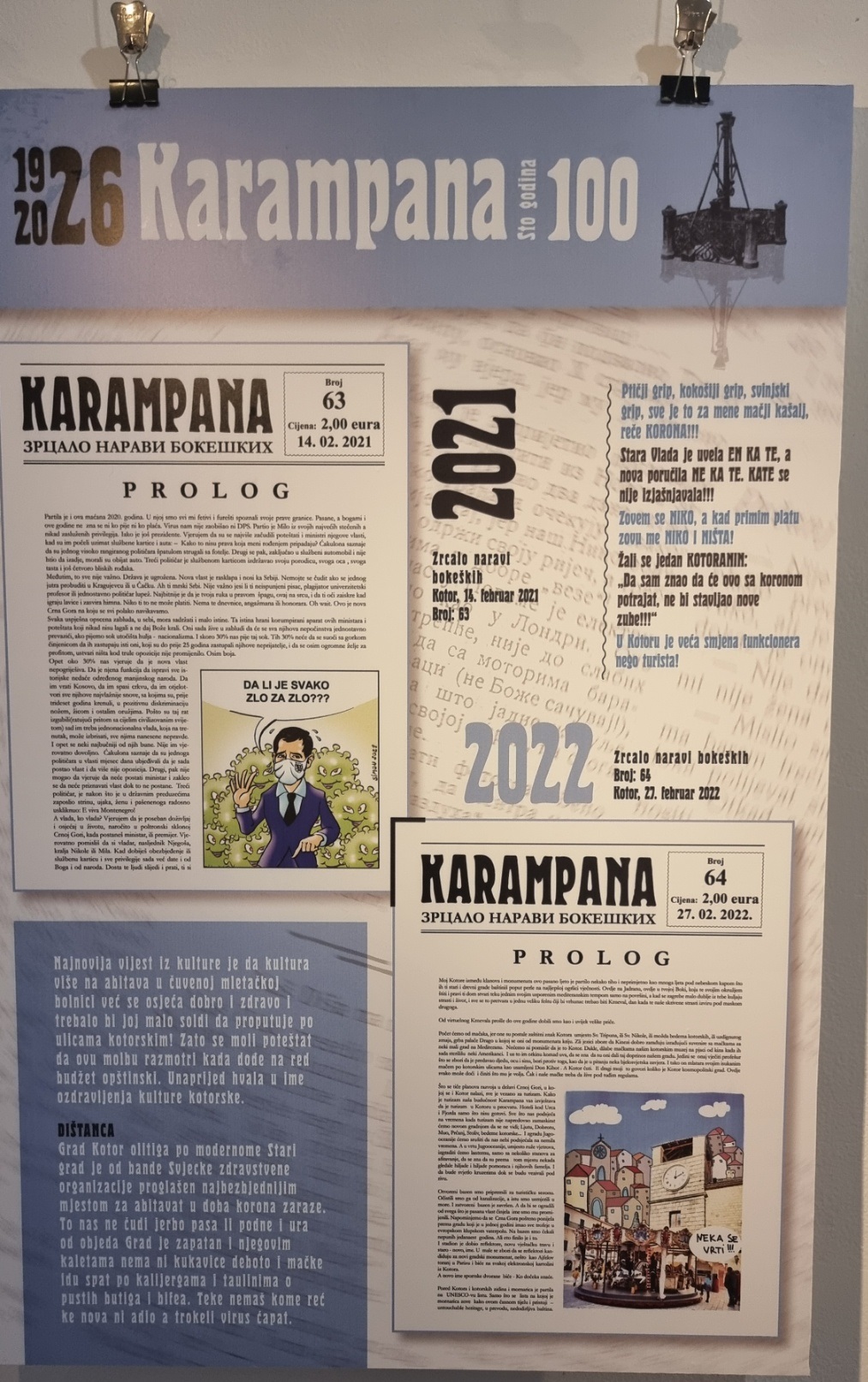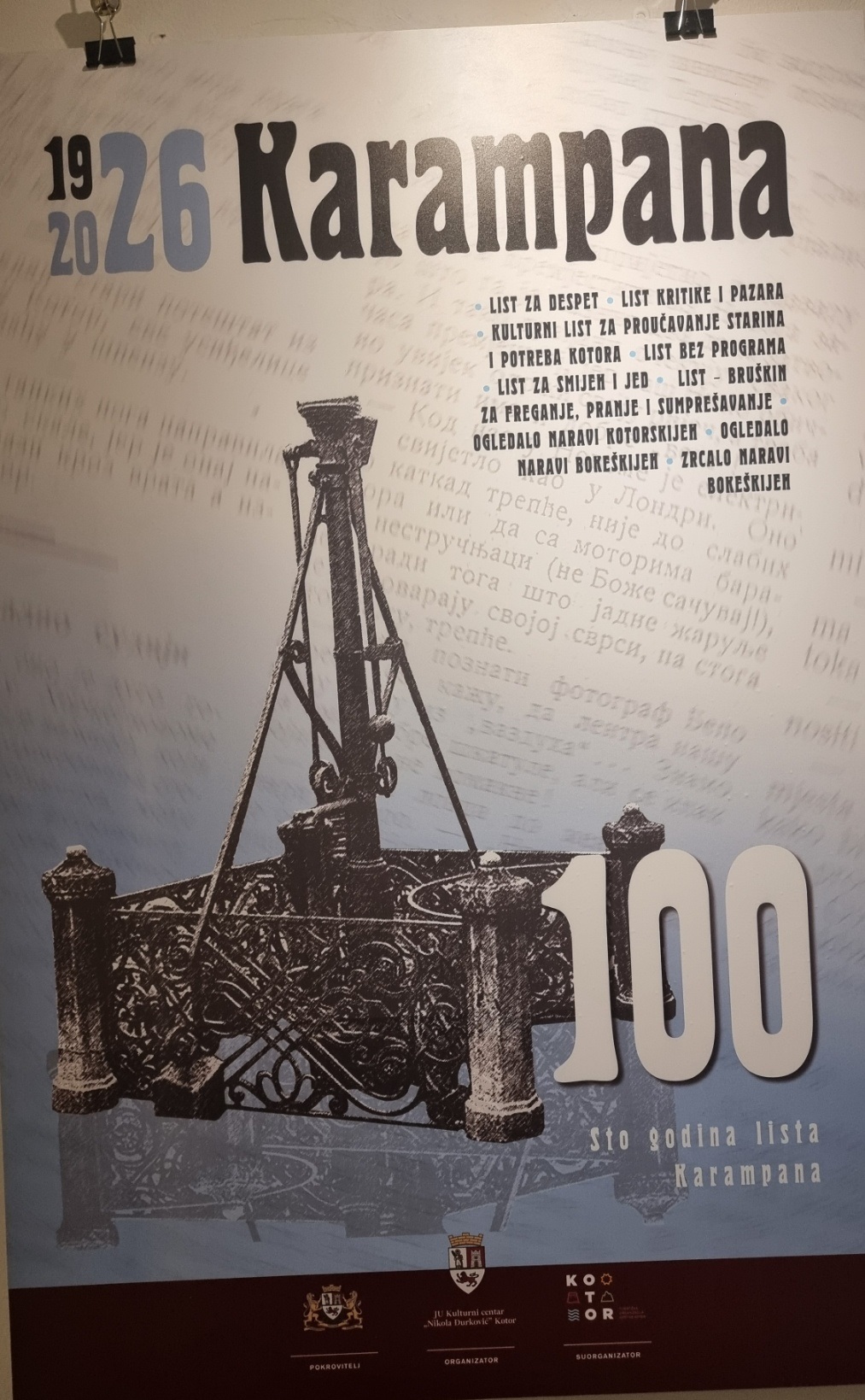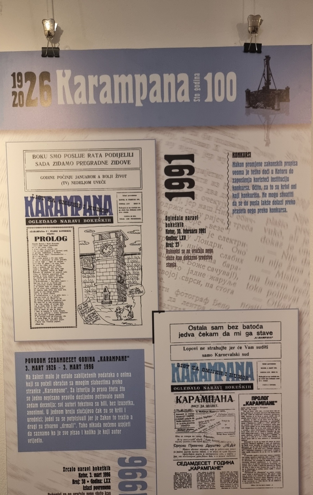 Inače, nakon multimedijalne večeri u Kinu “Boka” i pomenuta izložba postavljena je povodom 100 godina lista „Karampana“.