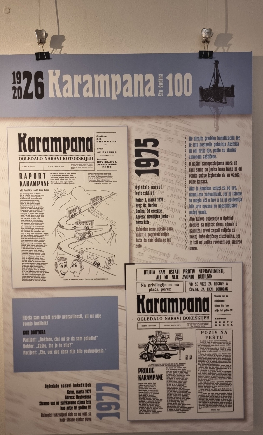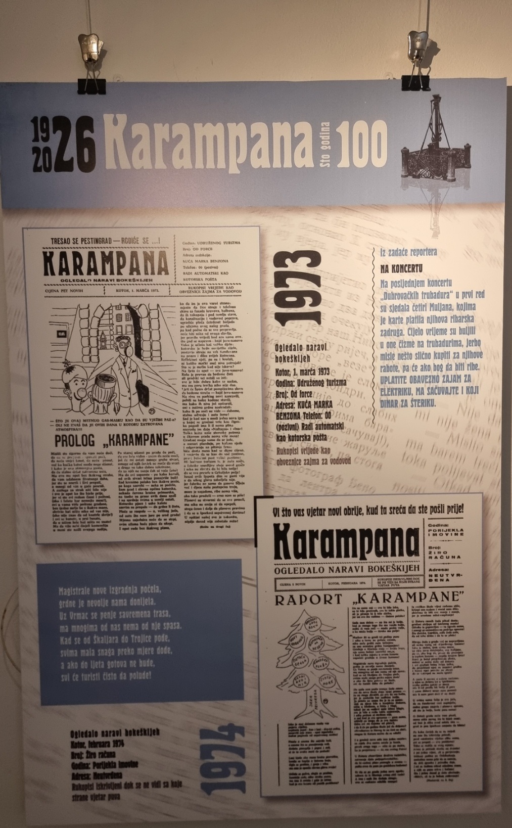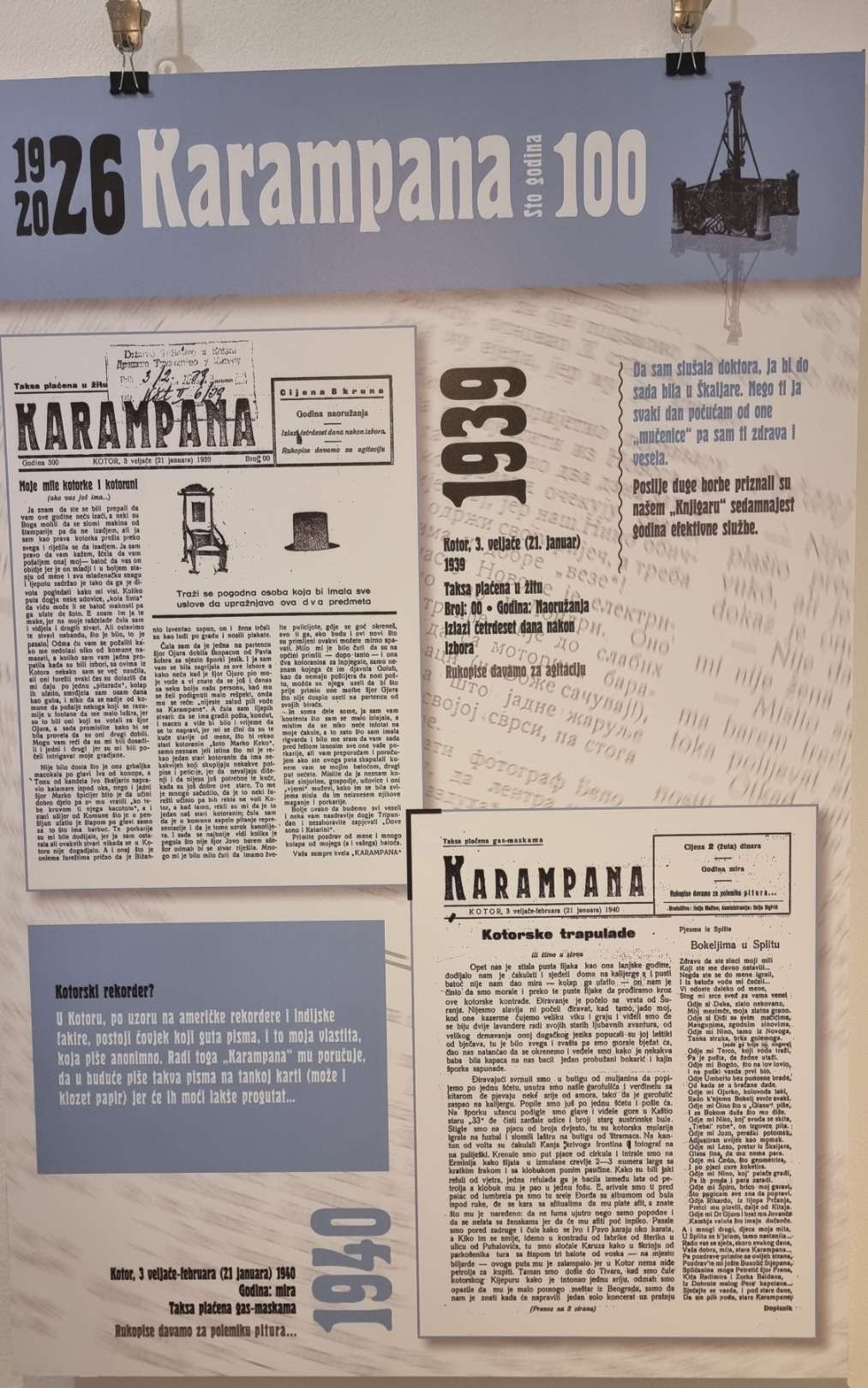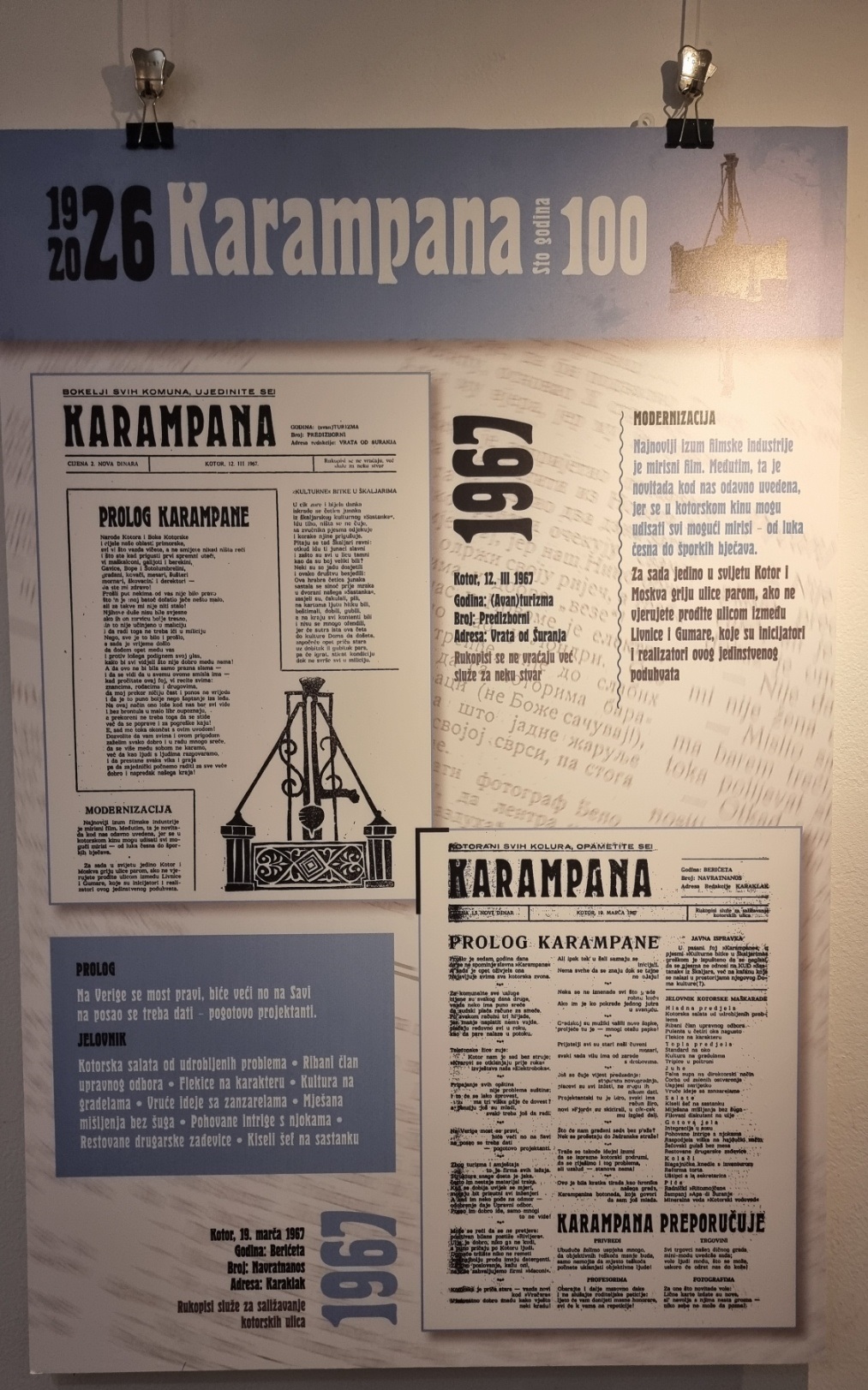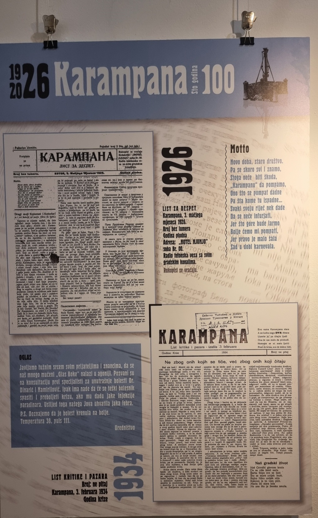 Inače, nakon multimedijalne večeri u Kinu “Boka” i pomenuta izložba postavljena je povodom 100 godina lista „Karampana“.