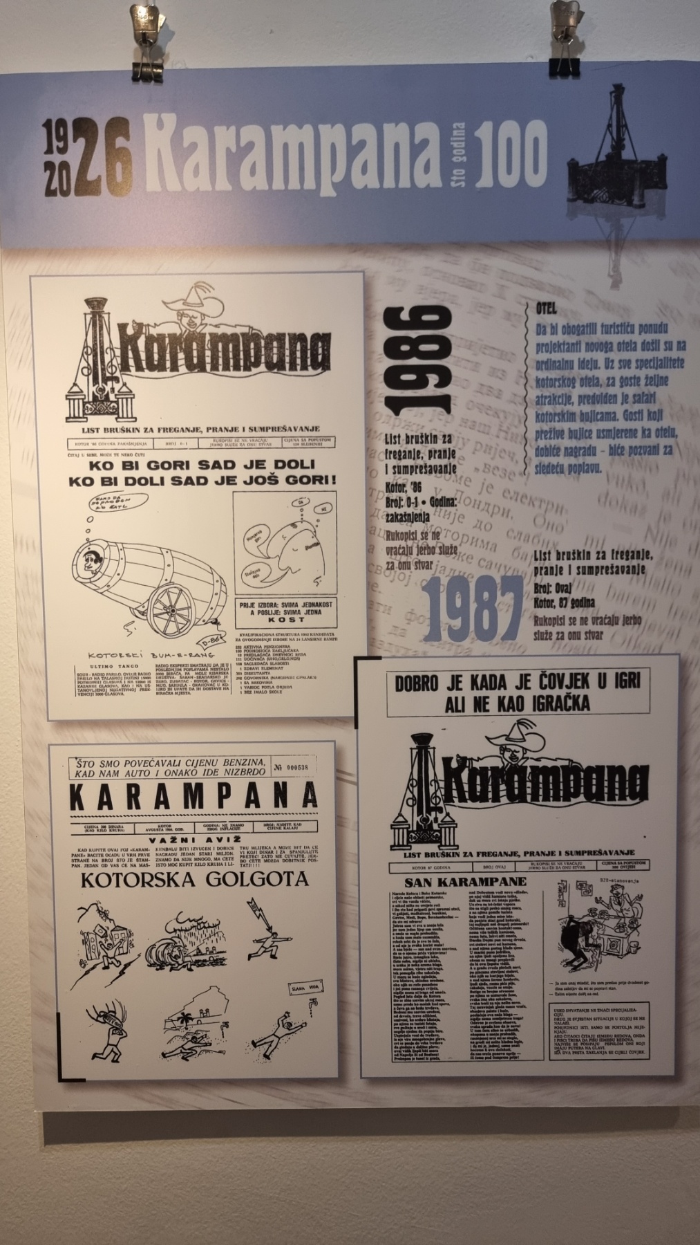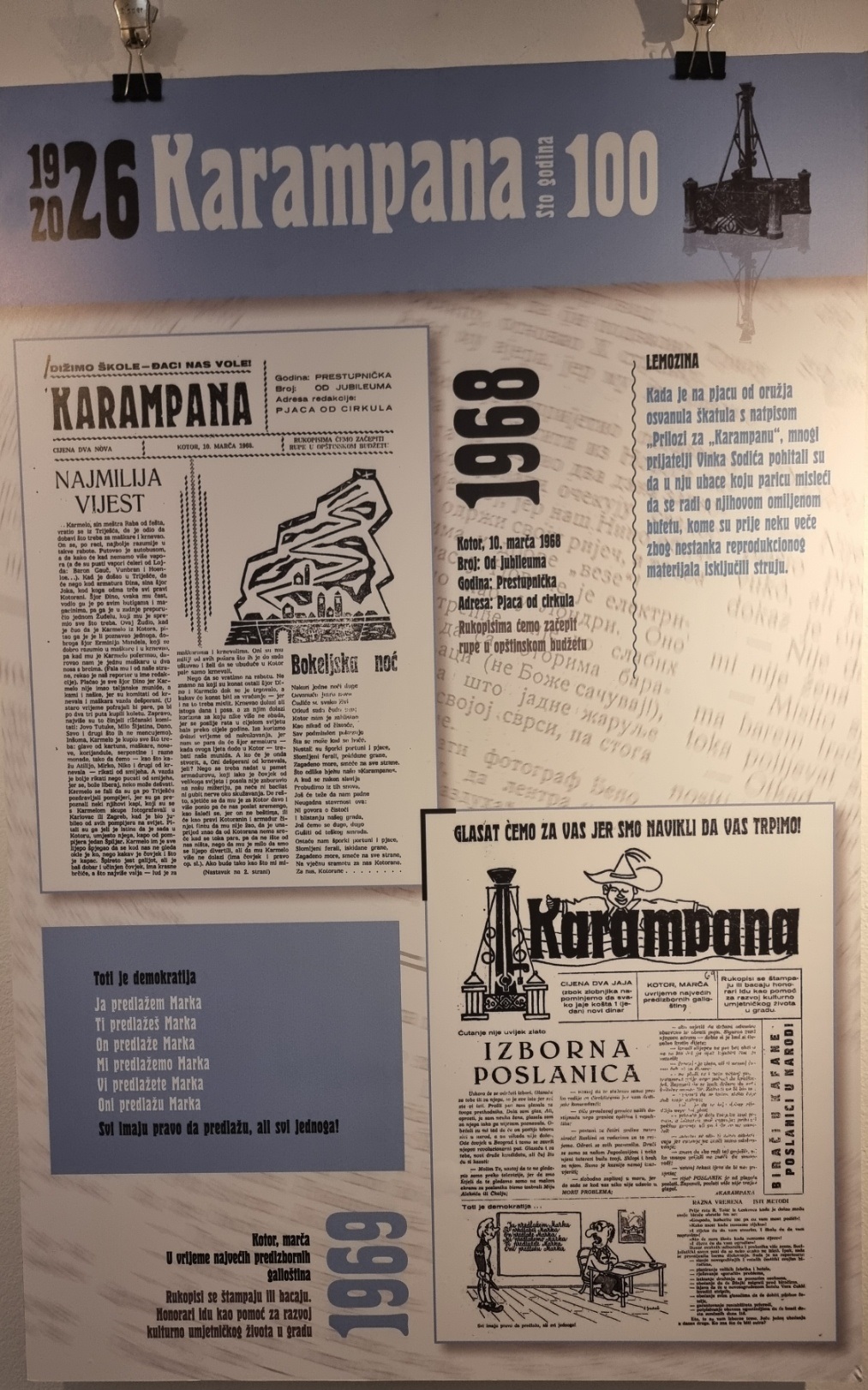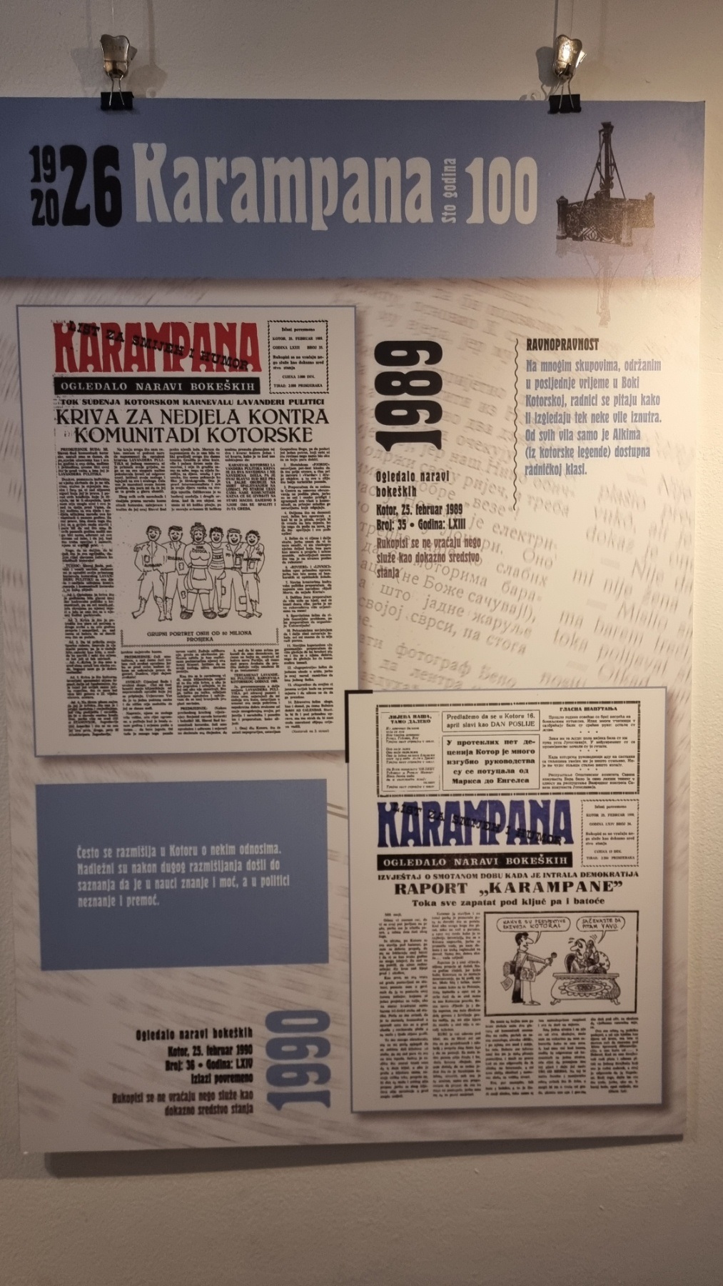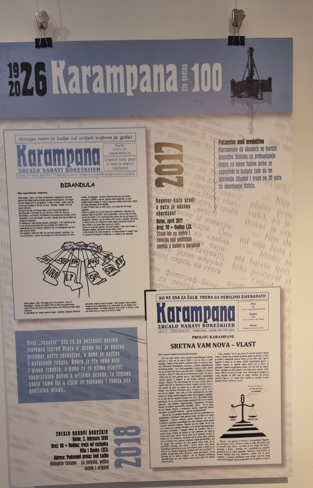 Inače, nakon multimedijalne večeri u Kinu “Boka” i pomenuta izložba postavljena je povodom 100 godina lista „Karampana“.