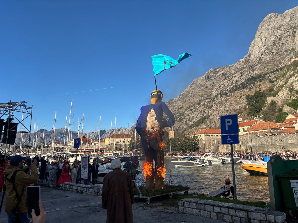 Kotorani su danas na Maceu spalili ovogodišnjeg krivca za sve nedaće u protekloj godini Mirona Tribulusa zvanog Pirun.