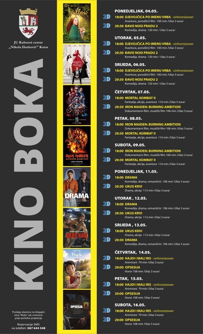 REPERTOAR KINA BOKA OD 04. DO 16. MAJA 2026.