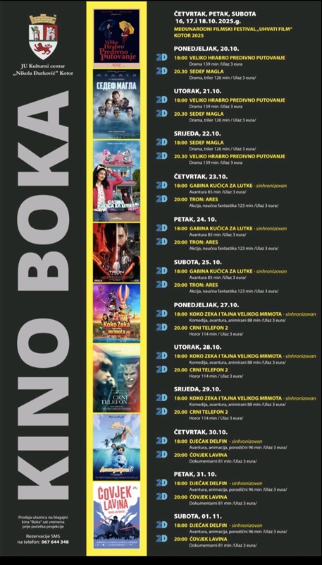 REPERTOAR KINA BOKA OD 16. OKTOBRA DO 01. NOVEMBRA 2025.