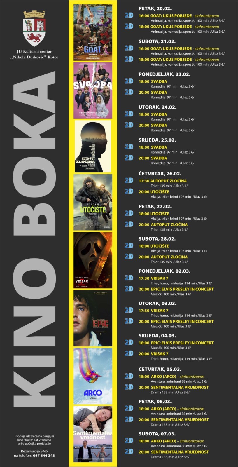REPERTOAR KINA BOKA OD 20. FEBRUARA DO 7. MARTA 2026.